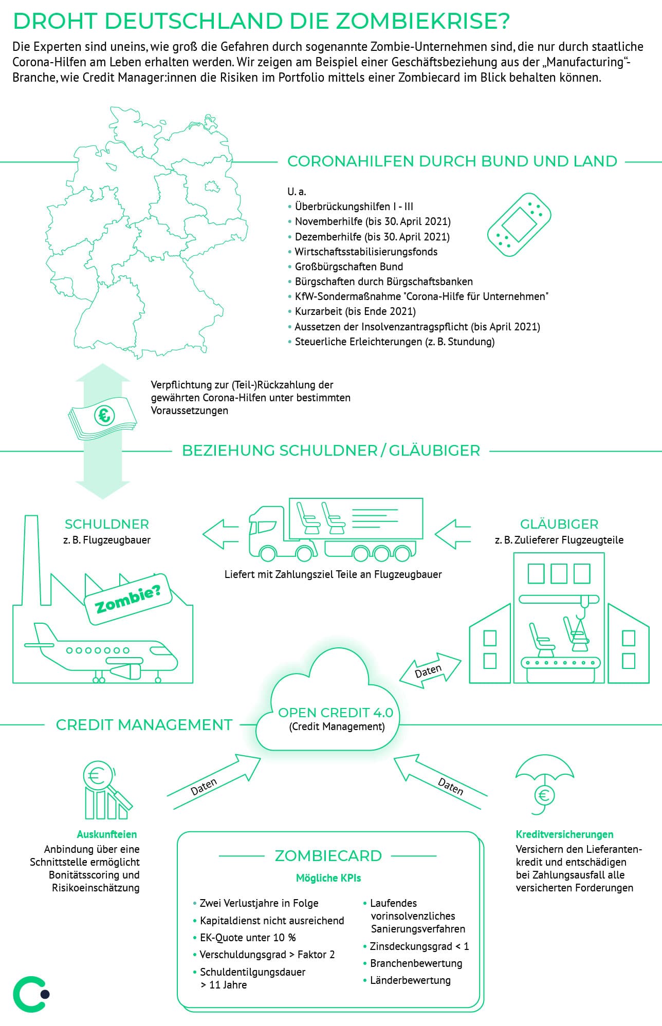 Zombieunternehmen: dieses Gruselwort geistert seit Beginn der Corona-Pandemie durch Deutschlands Finanzabteilungen. Wie groß ist die Gefahr im Credit Management, dass bestimmte Kund:innen im Portfolio nur durch staatliche Hilfsgelder am Leben erhalten werden. Mittels einer Zombiecard können die größten Gefahren ausgehebelt werden.